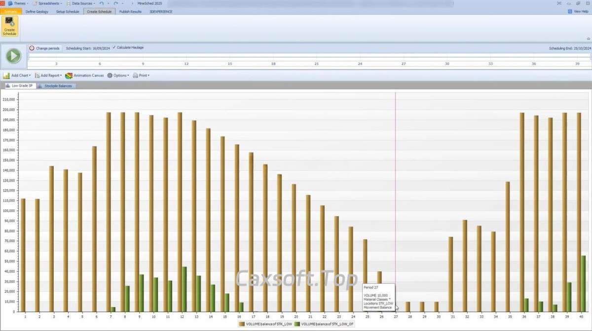 GEOVIA MineSched 2025 是由 Dassault Systèmes 旗下GEOVIA品牌推出的一款专业矿山生产计划与调度软件。该软件主要用于将长期战略采矿计划转化为短期及日常生产计划,帮助矿山企业实现高效运营与收益最大化。