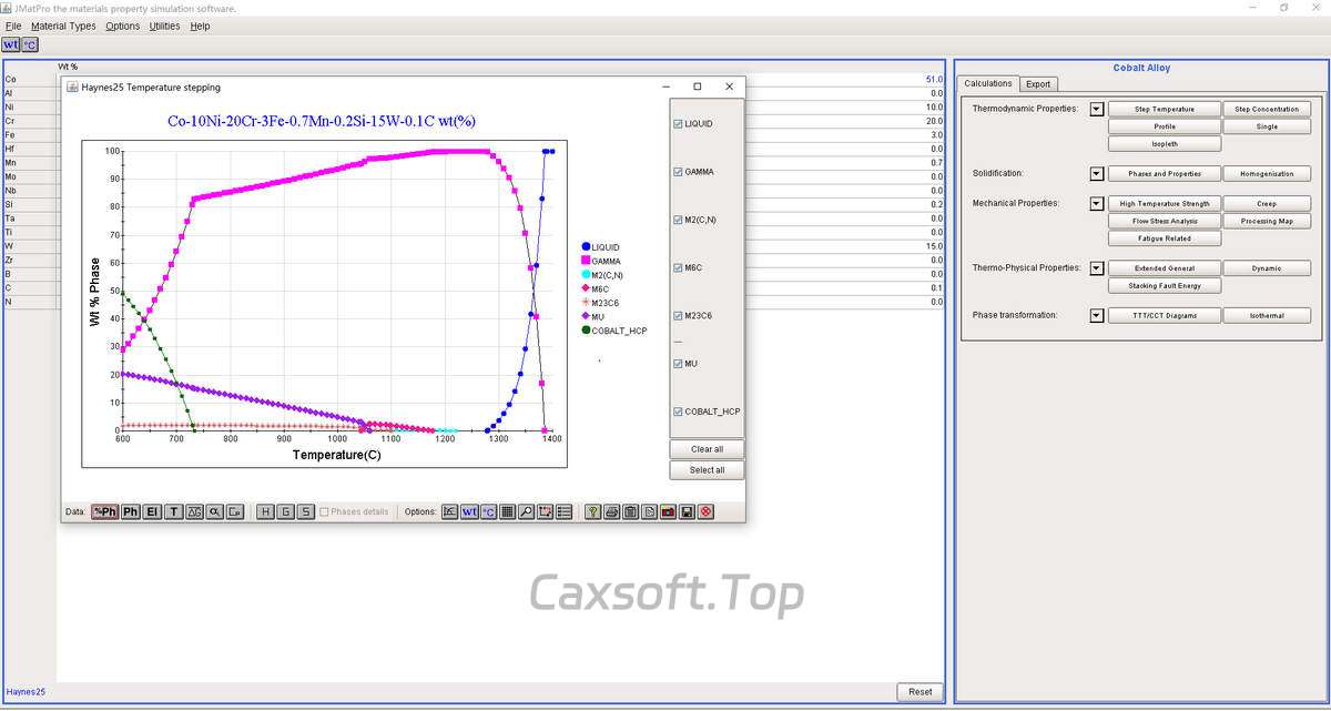 JMatPro 是 专业的材料性能模拟软件,采用热力学和动力学模型,计算多组分合金的平衡相图、物理性能、机械性能和凝固行为。它帮助材料科学家和工程师在设计阶段预测材料行为,减少实验试错。